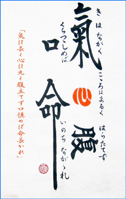 「気は長く心は丸く腹立てず口慎めば命長かれ」 |